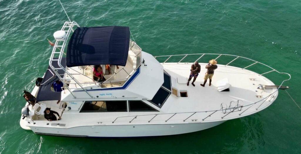 Experience the MV Bah-Bye, a 43-foot Hatteras troller, ideal for overnight getaways for six or day trips for up to 15. Explore the beautiful waters of Antigua and Barbuda—Dine at Nobu, snorkel, fish, or relax in the sun. Book your unforgettable charter today!